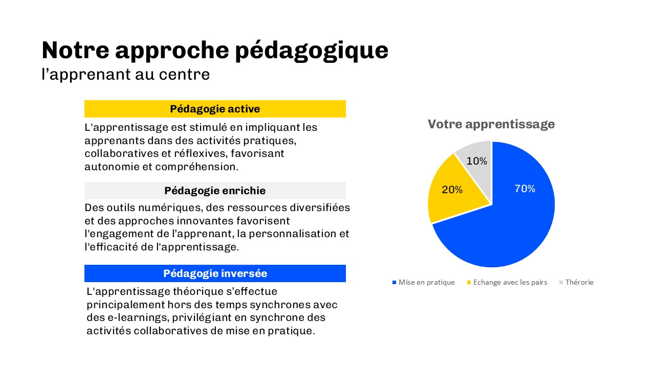 Il couvre la stratégie, la recherche utilisateur, la priorisation, la collaboration interdisciplinaire et l’analyse de données, pour former des professionnels capables de créer des produits utiles, viables et désirables.